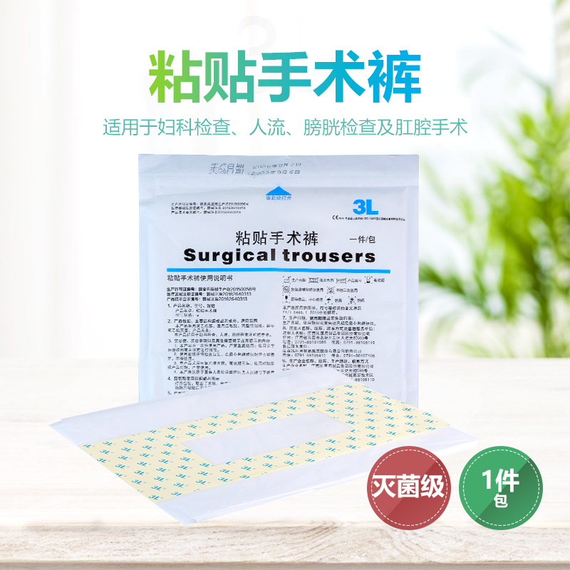 粘贴手术裤:采用聚乙烯膜、医用压敏胶、离型隔离纸制成。适用于妇科检查、人流、膀胱检查及肛腔手术。