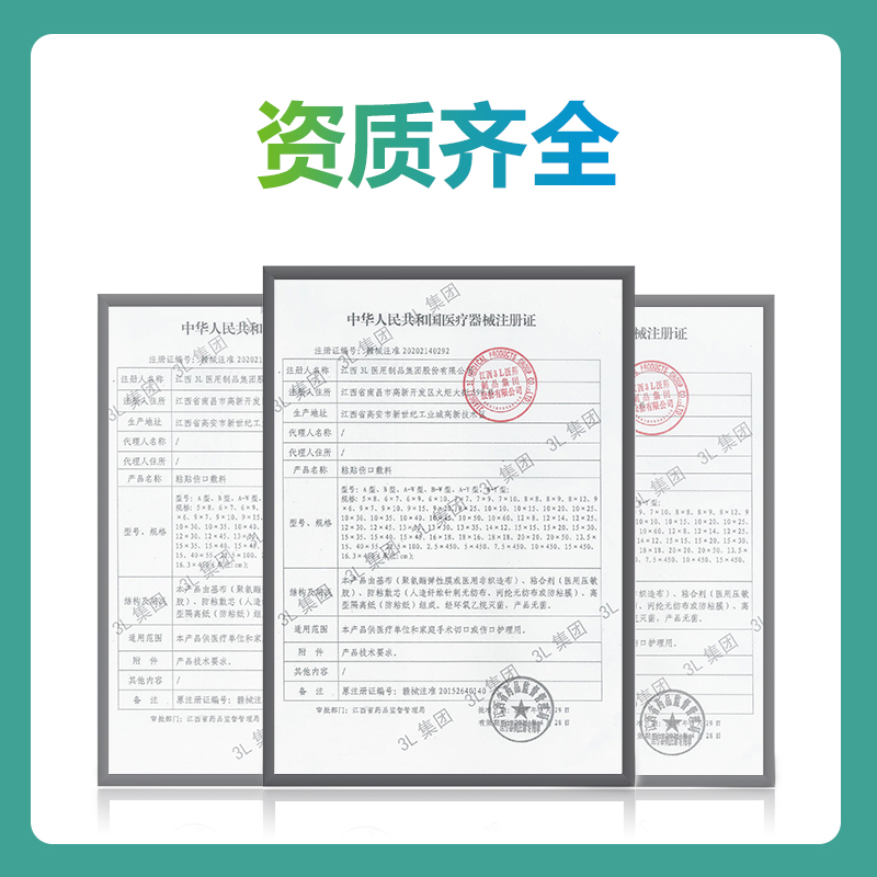 粘贴伤口敷料:由基布(聚氨酯膜或无纺布)、医用压敏胶、敷芯(不含药)及离型隔离纸组成。 供手术、外伤创面或留置动、静脉导管贴敷用。